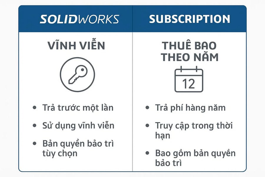 Đây là khoản phí quan trọng mà doanh nghiệp cần chú ý khi mua bản quyền SOLIDWORKS 2026. Mỗi license SOLIDWORKS trong lần mua đầu tiên sẽ luôn kèm theo Subscription Service.
