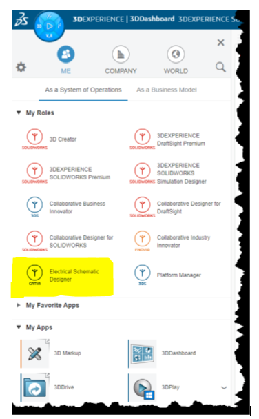 Tất cả các giải pháp của 3DEXPERIENCE Works làm việc cùng nhau một cách liền mạch, giúp đơn giản hóa việc quản lý, chia sẻ và cộng tác dữ liệu trong toàn tổ chức. Với Electrical Schematic Designer, bạn sẽ trải nghiệm quy trình làm việc đơn giản hóa với quyền truy cập dễ dàng vào tất cả các role và app trong một giao diện để bạn có thể dễ dàng mở một ứng dụng và làm việc trong một môi trường thống nhất. Chỉ cần khởi chạy Electrical Schematic Designer từ máy tính để bàn của bạn hoặc từ trình duyệt nền tảng.